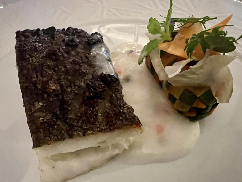 Olivo, Ventresca di Tonno con Mandorle, Ribes e Patata Viola