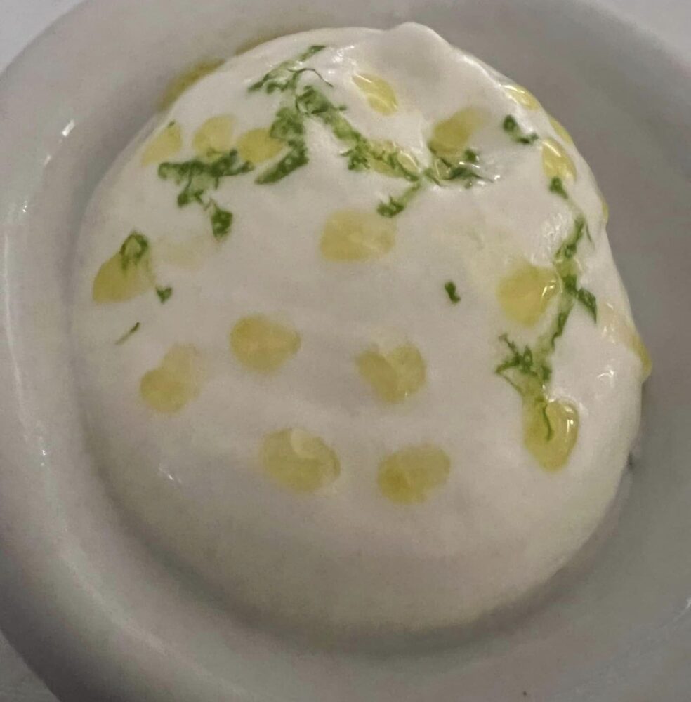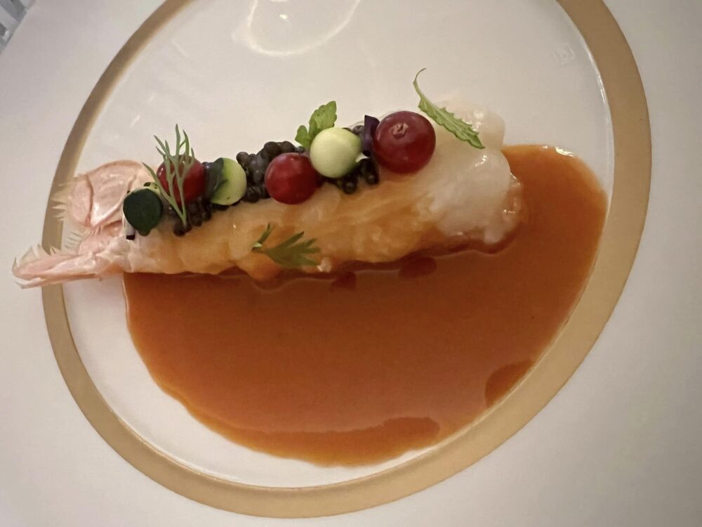 Proseguiamo con lo gnocchetto di patate con astice e cipollotto nocerino. Staple dei percorsi di Andrea Migliaccio, piatto dolce, rotondo e delicato, che fa da tela a tinte pastello ad una pregiata astice cotta davvero perfettamente ma soprattutto alla legittimazione di un ingrediente pregiato e nostrano quale il cipollotto nocerino dalle innumerevoli proprietà organolettiche, profumi e qualità.