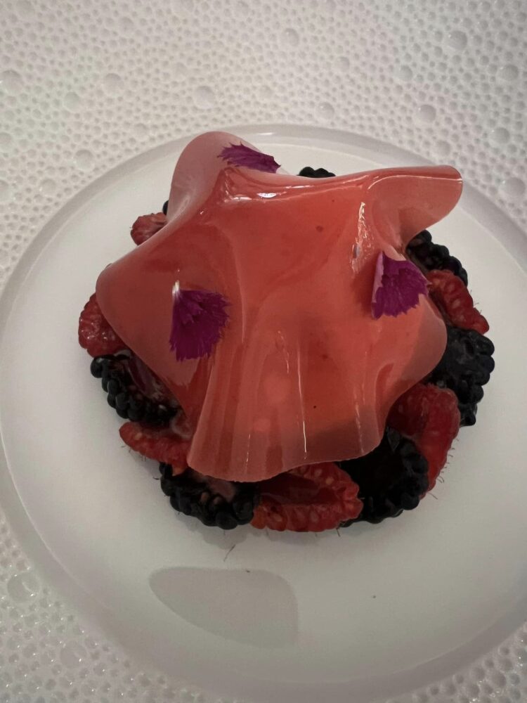 Dolci come sempre di grande impatto scenico, tecnica e resa gustativa. Mirabile l’impiego della frutta che è tornata ad avere un ruolo primario nel preludio di fine pasto, soprattutto alla tavola dell’Olivo. Coccole finali come sempre doverose e bene accette.