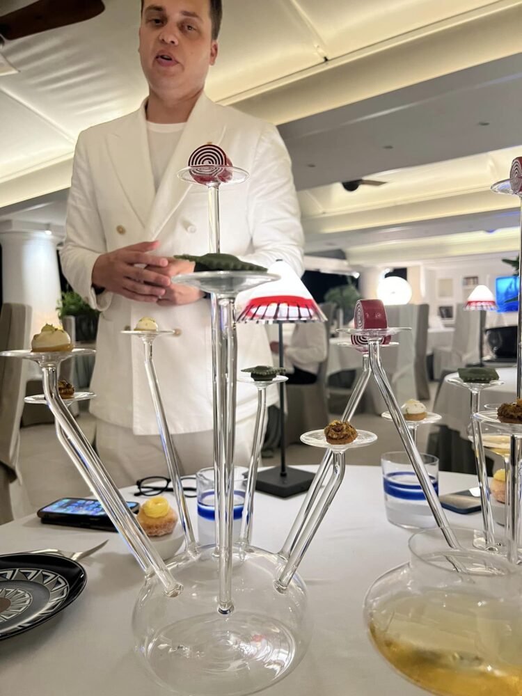 Doverosa premessa. Cosa fa eccezionale un ristorante oltre alla cucina? Semplice, il servizio. E’ proprio dal servizio che voglio cominciare la mia relazione sul percorso 2021 targato L’Olivo del Capri Palace Jumeirah. Nel bel mezzo di questa degustazione infatti mi sono accorto – come il tempo si fosse rallentato di colpo – che il lavoro e le tempistiche di servizio dei ragazzi di sala sono state tarate al millimetro per volontà del direttore Ermanno Zanini, di Fabio Raucci e di Luca De Coro in virtù di prove su prove di servizio al fine di attribuire allo stesso un perfetto timing fondato sull’attenta osservazione dei commensali e della precisa coordinazione dei movimenti dei giovani in sala.