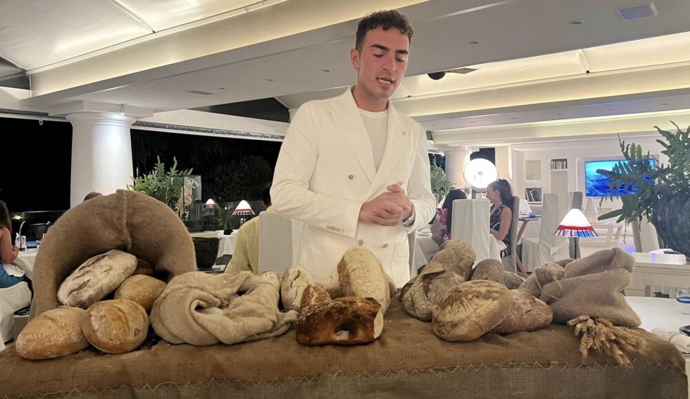 Si comincia con il percorso, benvenuto dalla cucina, un raffinato viaggio tra terra e mare e soprattutto il servizio del pane che da solo vale il prezzo del biglietto come direbbero i cineasti, di cui il pane cafone – bell’elogio alla Napoli che fu – rappresenta il pezzo più importante della collezione.