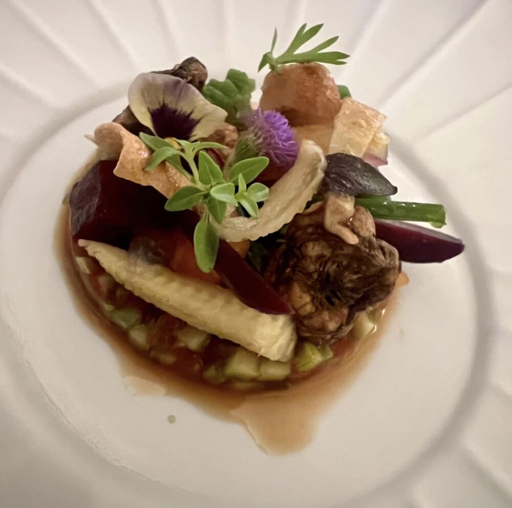 L’“Orto” dell’Olivo è un trionfo in verde finissimo, esaltato dal tartufo nero, dall’olio extravergine, dalla qualità dei vegetali, dai contrasti. 21 tipologie e 21 cotture differenti. Esaltazione pura della croccantezza e della freschezza vegetale. Francia nel piatto elaborata attraverso i prodotti del nostro orto.