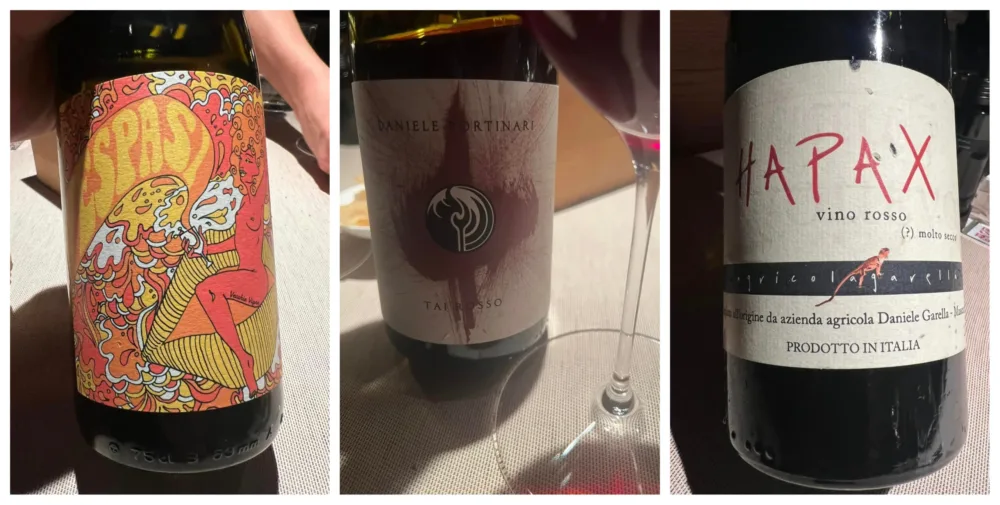 Scegliamo il “Cinque” di Marco Buvoli, pinot nero metodo classico emozionante ed emozionale di Gambugliano, che uno deve cercare apposta sulla mappa geografica e il Tai Rosso di Daniele Portinari, insospettabile nelle delicatezze del frutto e nella trama piacevolmente elegante.