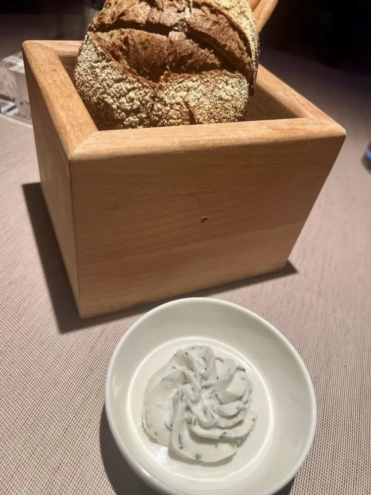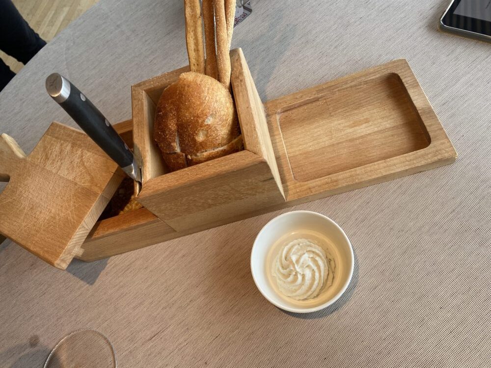 Vale la pena soffermarsi sul pane, in genere un po’ trascurato nelle recensioni eppure fondamentale, anche in considerazione del fatto che in genere è la cosa che più si mangia. Abbiamo ammirato l’ottima tecnica di lievitazione, come del resto potrete vedere anche dalla foto.