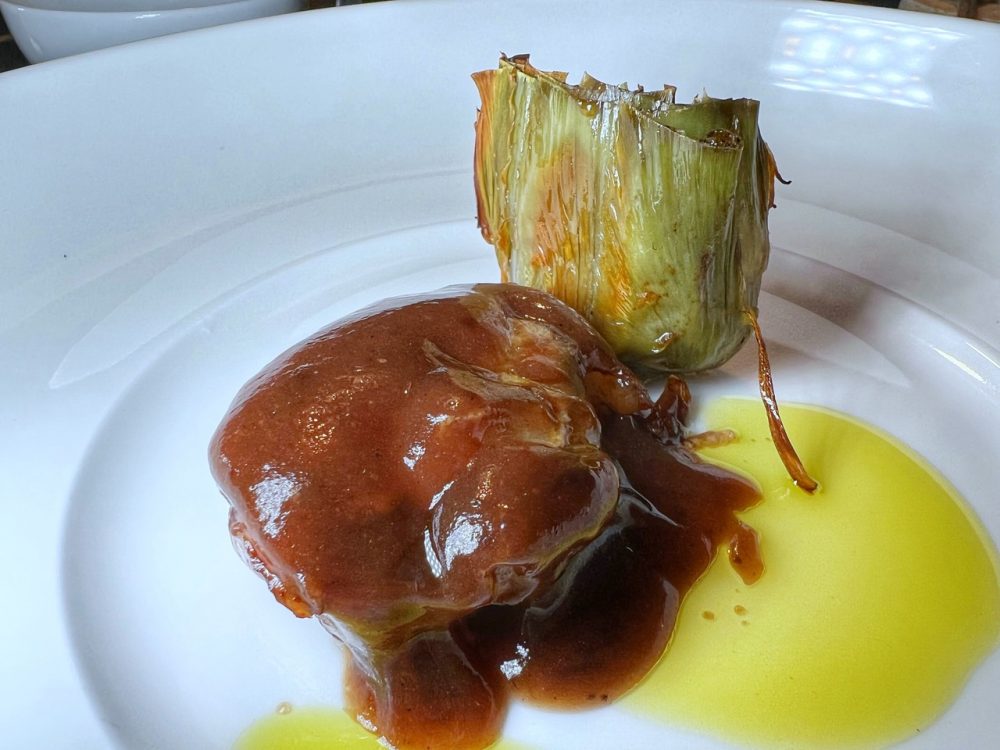 Frantoio – filetto di agnello cotto su fieno di altura, vino rosso e carciofo candito alla mentuccia