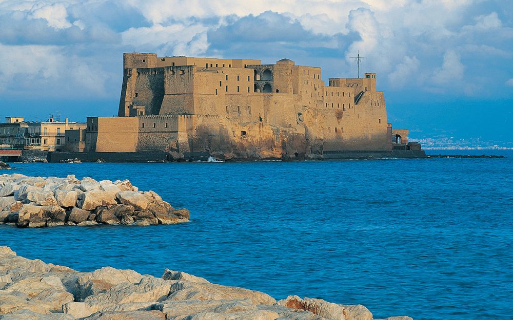 La fotografia mostra l’antica fortificazione Castel dell’Ovo, che sorge sull’antico isolotto di Megaride