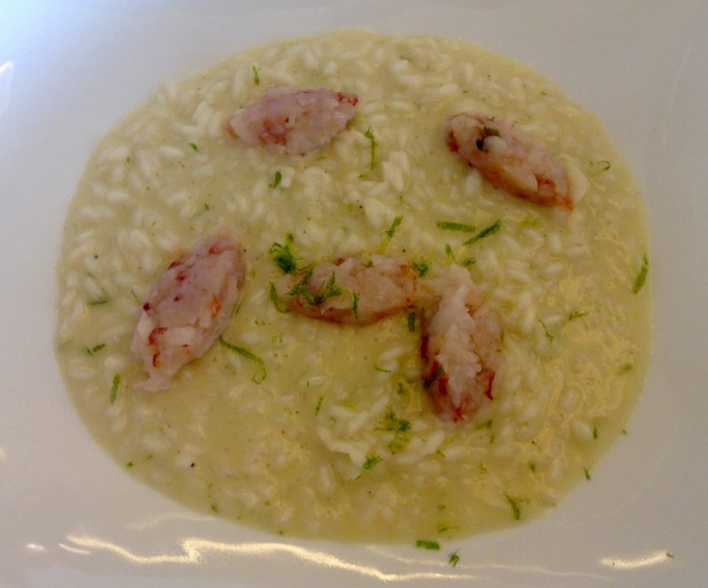 Al Vigneto, risotto ai piselli, scampi, sughetto di crostacei