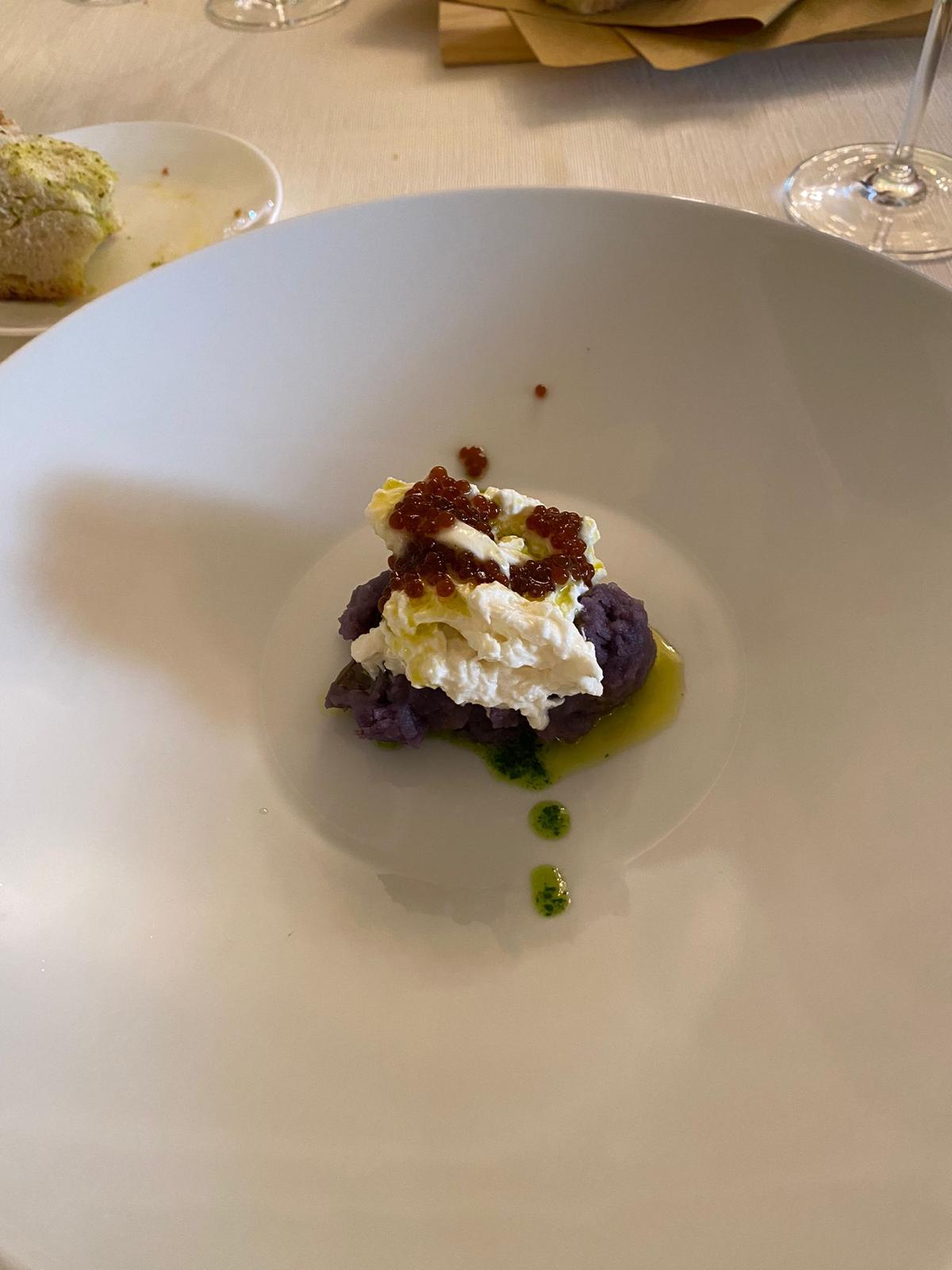 Valentina Martone, la patata vitellotta con stracciata e caviale di alici