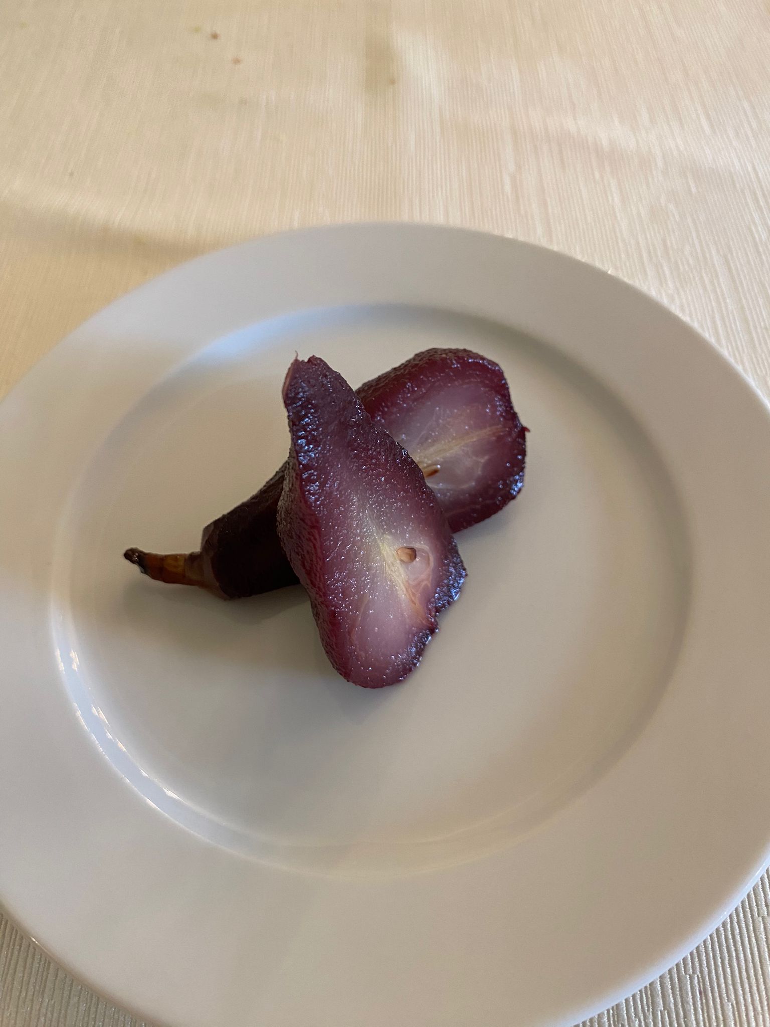La pera cotta all’ Aglianico è invece un omaggio agli antichi dessert del periodo invernale quando la neve veniva condita con il vino cotto per appagare la voglia di dolce.