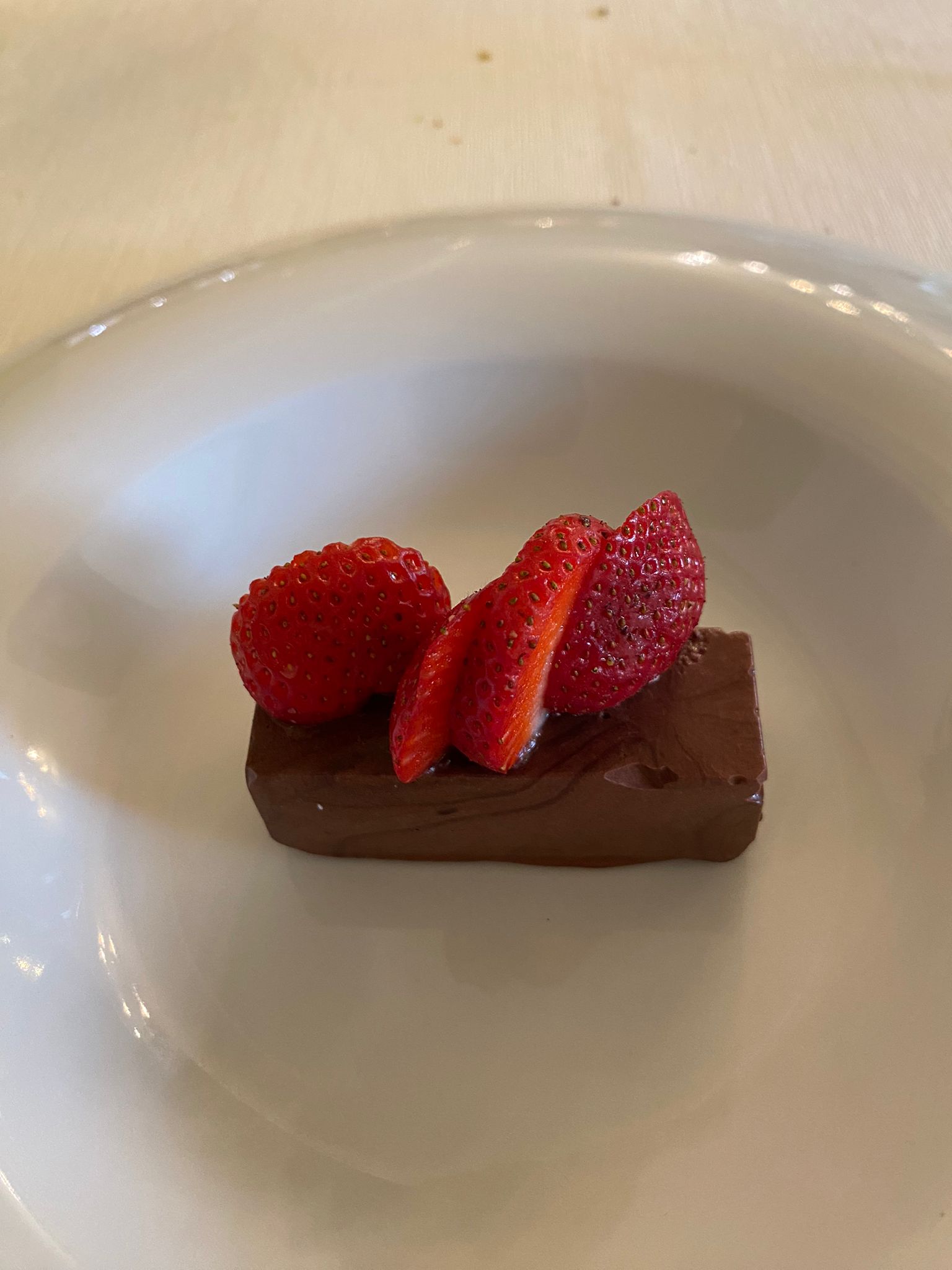 Unico tocco moderno la mattonella di cioccolato servita con le fragole al naturale, tanto per concludere il pranzo che al Megaron si distingue sempre per stagionalità, territorialità ed eleganza.