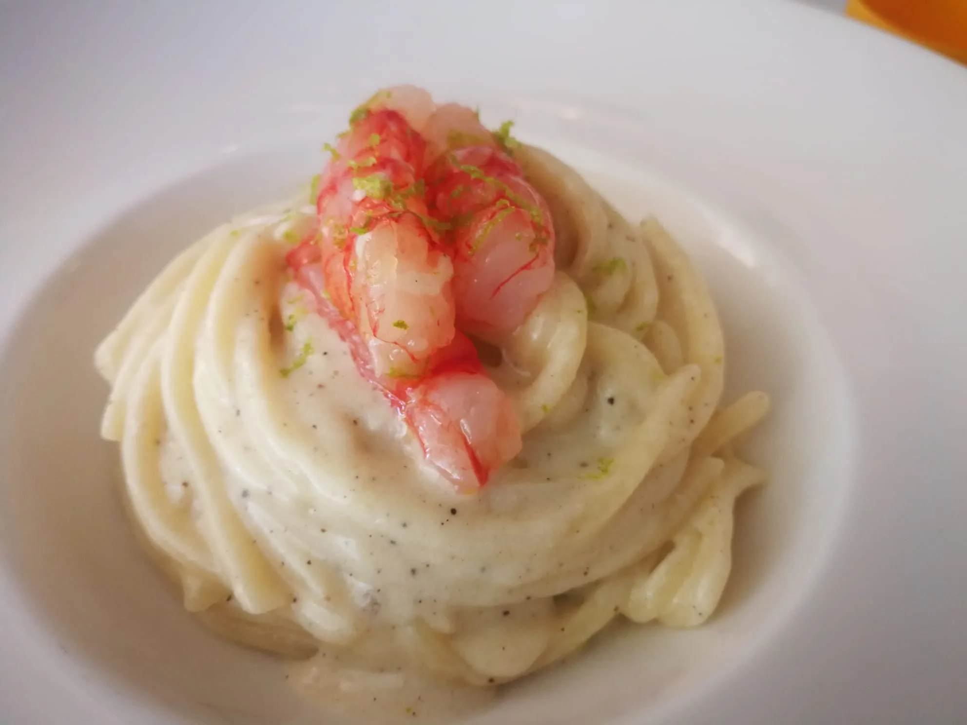 Maria Rina, cacio e pepe e gamberi del Golfo