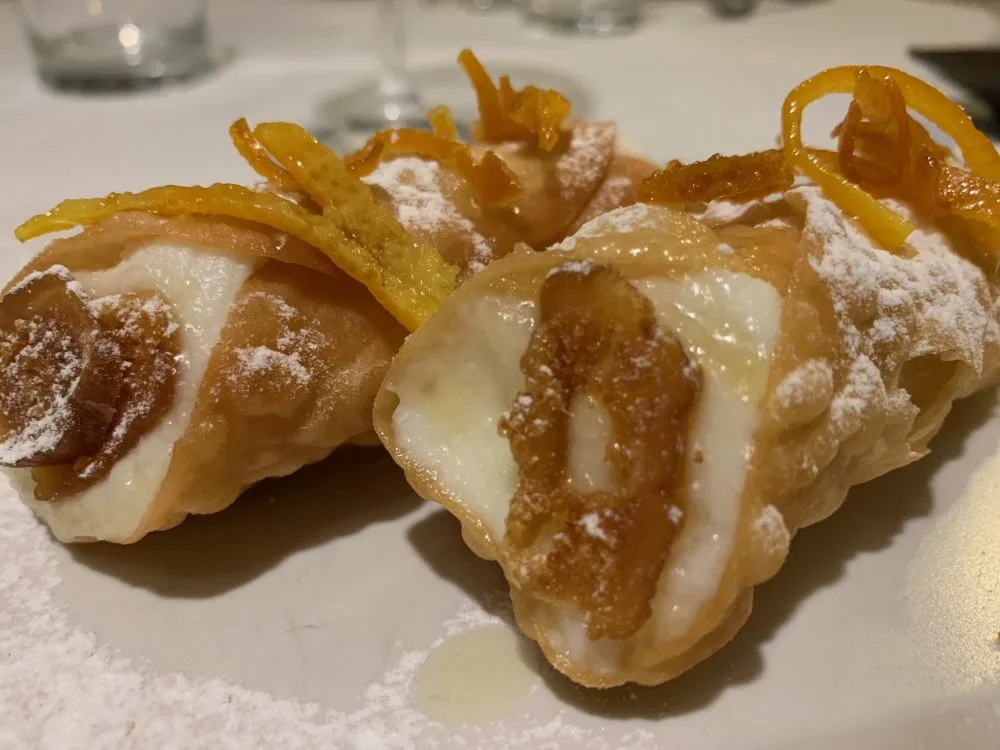Tra i dessert la sfogliata calda con crema e frutta di stagione ed il suo inimitabile cannolo cilentano con ricotta di capra, miele e fichi secchi inventato per promuovere la capra cilentana in un convegno a Berlino, una ricetta fortemente identitaria che tanti hanno cercato di imitare come spesso accade per i prodotti d’eccellenza. Ma va bene così.