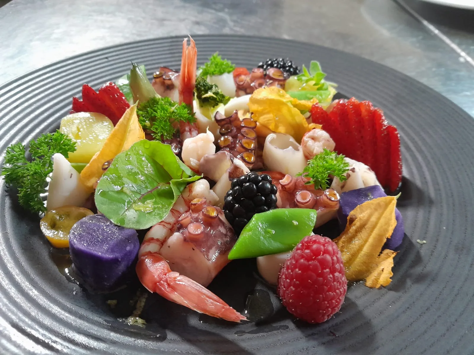 Maria Rina, insalata di mare con frutta ed erbe spontanee