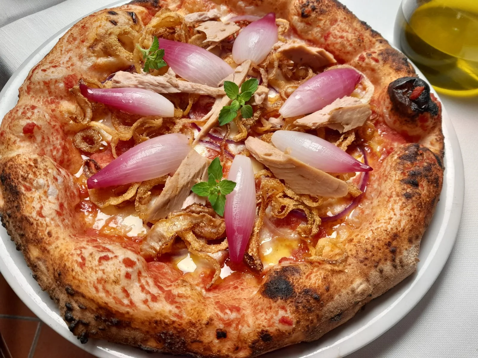 Maria Rina, pizza tonno e cipollotto di Tropea