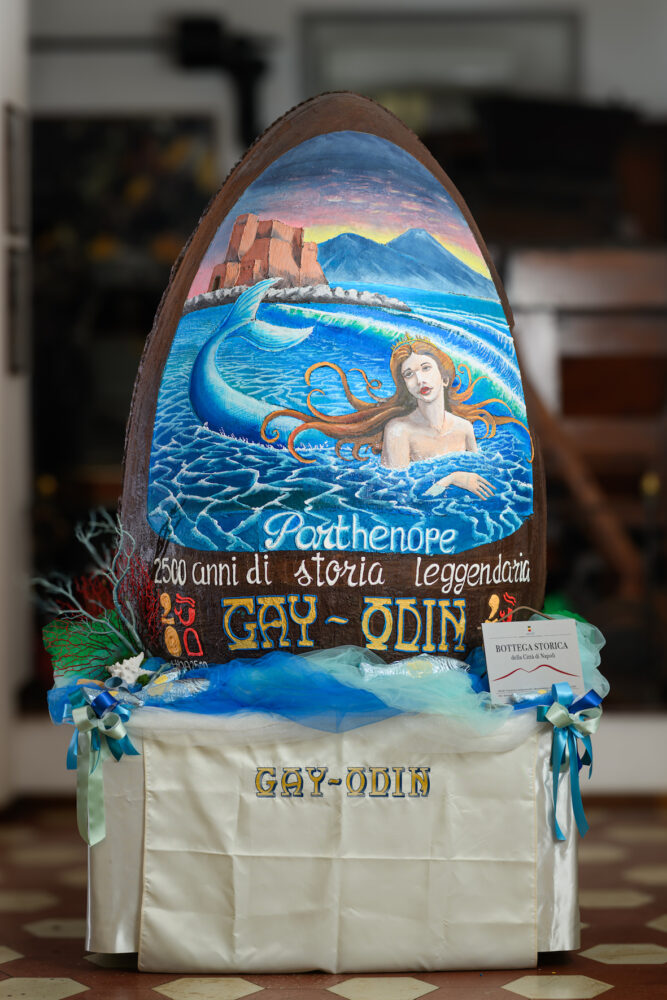 Quest’anno l’opera è speciale come il compleanno a cui è dedicata. Al centro dell’uovo gigante c’è la sirena Parthenope, sul retro molti simboli e tanti figli illustri della città. Gigantesca l’opera, 350 chili per due metri e venti di altezza. Cioccolato fondente e inebriante, grazie alle miscele di cacao democraticamente divise tra l’Africa e il Sudamerica. Capolavoro artistico del decoratore Fabio Ceraso, che ha disegnato sulla superficie una sinuosa figura femminile arenata sull’isolotto di Megaride, dove sorge Castel dell’Ovo. Alle sue spalle San Gennaro, Virgilio, Maradona, Pulcinella, Pino Daniele, Eduardo, Totò, il teatro San Carlo, il corno di corallo e la pizza. Simboli della città che ci piace.