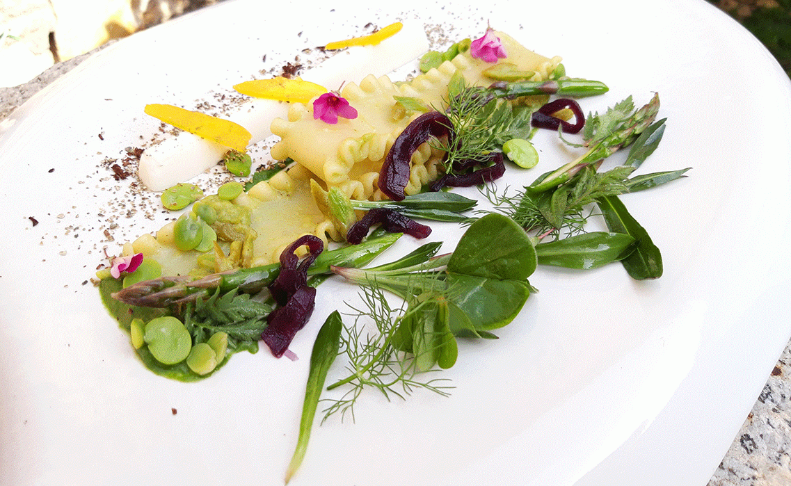 di Castelnuovo Berardenga, partecipa a Processo Creativo di Primo Piatto dei Campi, iniziativa siglata 50 Top Italy e Pastificio dei Campi, con Mafaldone primaverili al sapore di carbonara.