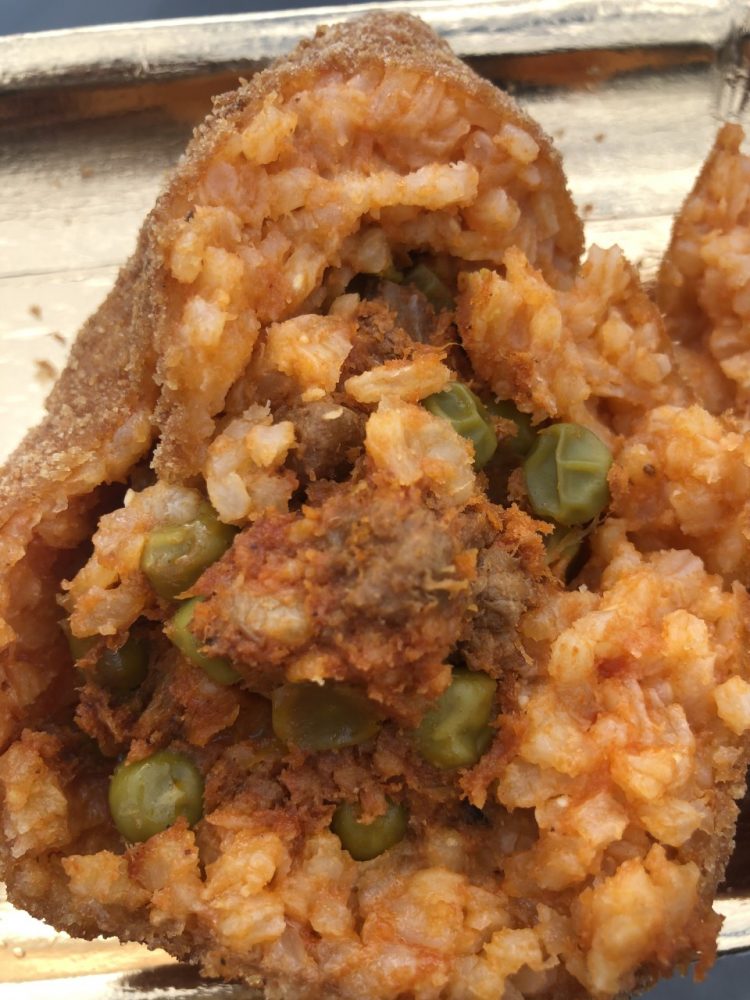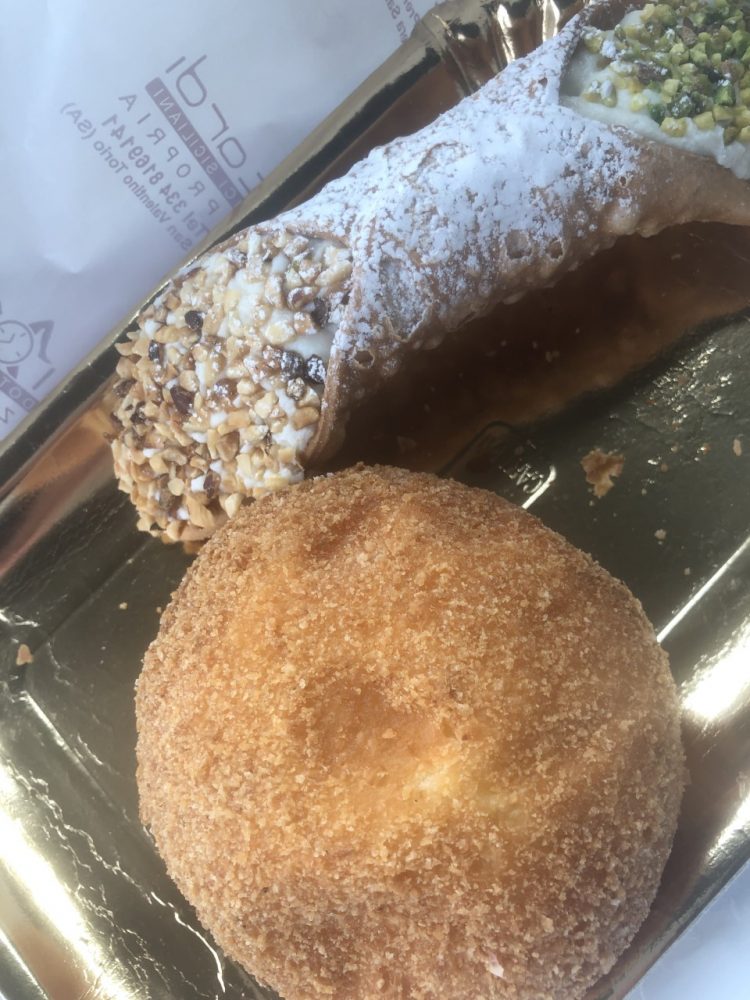 Ritrovarlo, a due passi da casa mia, confesso mi ha emozionato, e riportato indietro di 20 anni e 30 kg fa, era ancora più buono di come lo ricordassi, involucro croccante, che sembra una arancina (palermitana) ma con un generoso ripieno di ricotta di pecora, ingentilita da una scorzetta di limone e gocce di cioccolato. Doppio, triplo, quadruplo SLURP.