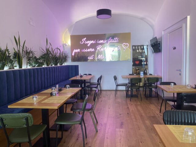 Tra le sedi, c’è quella di Caserta, a Corso Trieste, angolo Piazza Margherita, a pochi metri dalla Reggia Vanvitelliana, con una sala interna e spazio esterno, dove è anche possibile fermarsi per l’aperitivo nell’attiguo cocept Belli di Mamà, uno spazio aperitivo con un formula open.