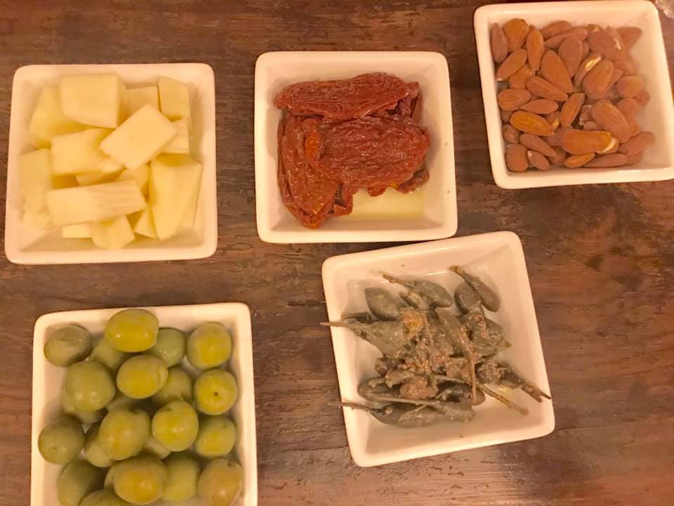 Hotel Signum. Aperitivo siciliano con cucunci, pomodori secchi, mandorle fresche e ragusano