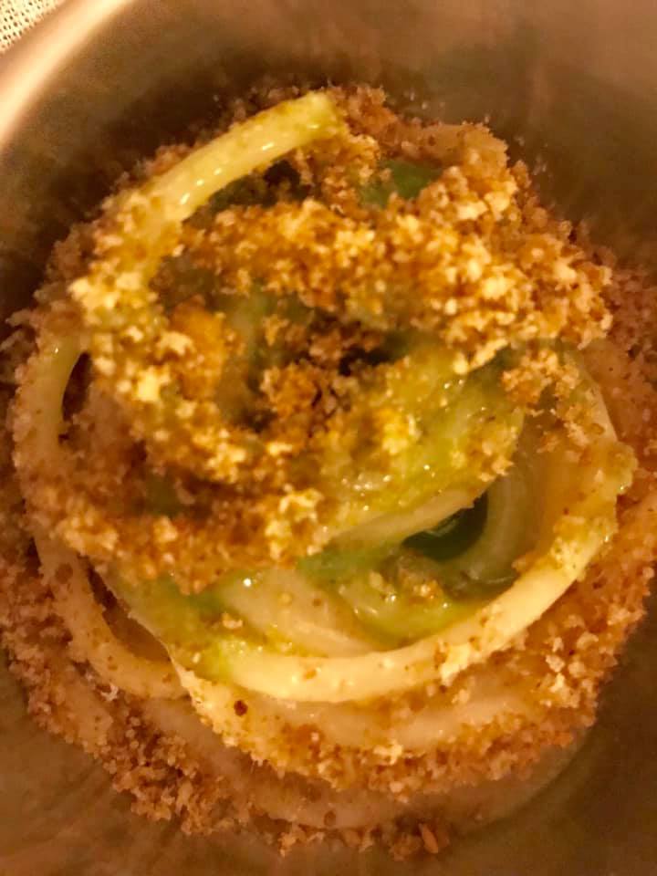 E’ stata una sorpresa ancor più decisa il percorso contemporaneo, ispirato alle frollature. Queste non sono fini a se stesse, ma si integrano alla perfezione con la cucina identitaria di Martina Caruso: danno sferzate, colpiscono nel segno, come stoccate assestate da un esperto schermidore.