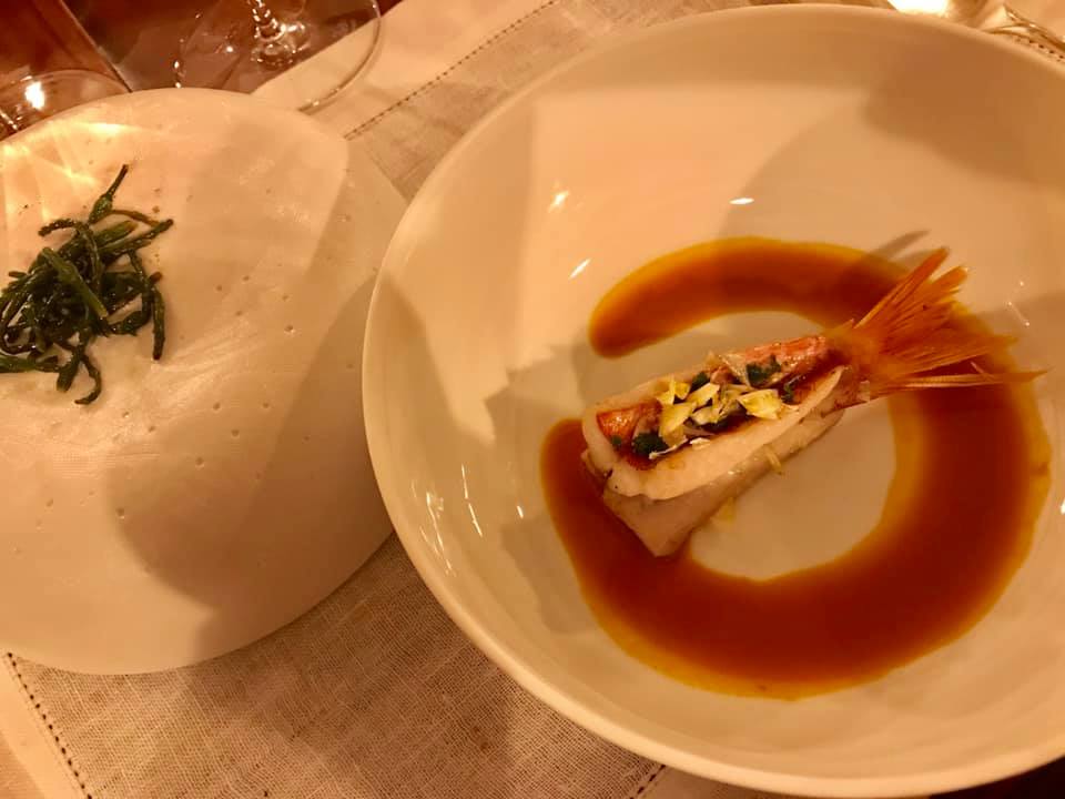 L’immancabile “bagnacauda” ai ricci di mare è presente come entrèe in tutte le ipotesi di menu. Il classico “sigillo” pencola deciso tra tradizione locale e viaggi esotici: abbiamo provato il gambero rosso al bloody mary e limone salato; la spatola panata al barbecue, mandorla e leche de tigre; tortelli in brodo di gallina, gambero rosso e tartufo nero; dentice, lattuga marinata, arancia e acciughe. Immancabile, in questo percorso, a chiusura, il sapido gelato al cappero di salina.