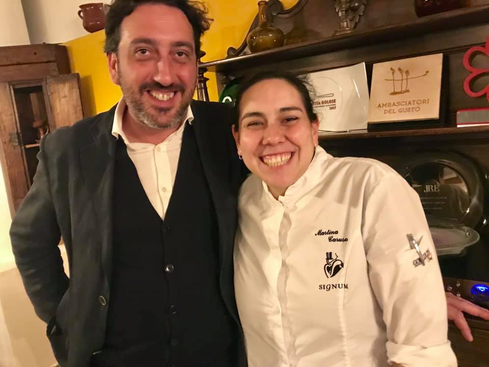 La cucina di Martina Caruso, cuoca dell’anno per la Michelin, è tutto questo messo insieme ed è qualcosa che, mantenendo le giuste relazioni, aggiornandosi in continuazione e viaggiando quando il ristorante di famiglia sta chiuso, può non avere limiti nell’ambire a qualsiasi risultato. Può andare molto oltre la prima stella che, per quel che può contare il mio parere, alla struttura sta già molto stretta.
