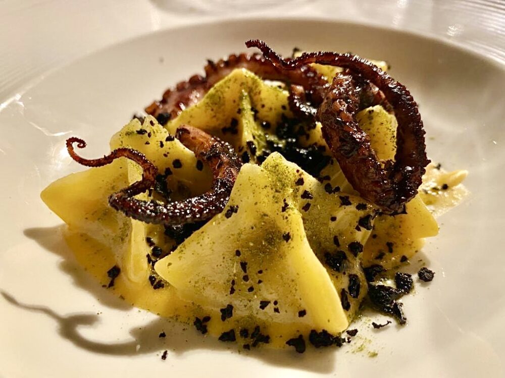 È il turno del “Fagottino di Polpo, Nduja, patate, limone e olive”, il piatto più “comfort” del menu, dai sapori ben distinti seppur perfettamente amalgamati.