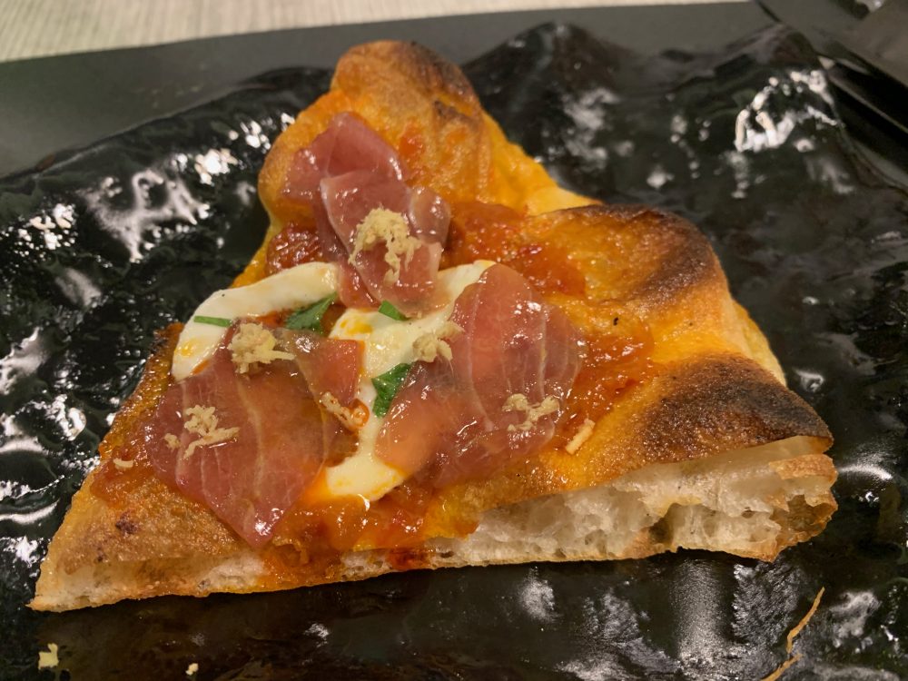 Francesco Martucci, superati i quarant’anni, ha fatto pace col suo fanciullino – di pascoliana memoria – e vive un momento di grande potenza creativa. È sul pezzo. Ed è dietro il suo banco. Nel frattempo gira il mondo assaggiando le cucine, dalle più sperimentali e avanguardiste alle più classiche. Ama quella del Noma e si emoziona al ricordo di quella di Passard. E pensa. E riflette. «Sono un curioso – commenta – mi piace approfondire la materia. Ambisco a portare la pizza nell’alta cucina».