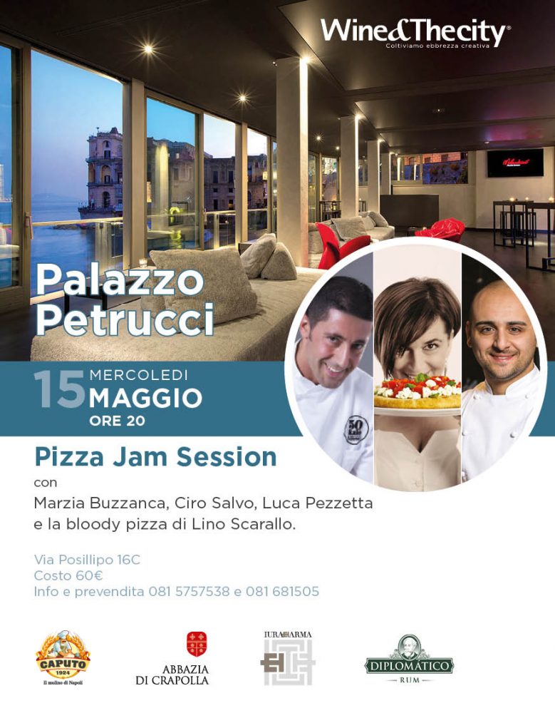 Mercoledì 15 maggio a partire dalle ore 20, il Malandrino, l’area lounge di Palazzo Petruccisi trasformerà per Wine&Thecity nella sede della pizza contemporanea con una serata esclusiva a base di pizza e buon bere. L’inedita Jam session di pizza vedrà tre grandi nomi della pizza italiana per la prima volta insieme a Napoli che mostreranno in diretta e faranno degustare ai presenti la loro personale interpretazione dell’arte bianca. Marzia Buzzanca la chef – pizzaiola simbolo della ricostruzione gastronomica del centro storico dell’Aquila parteciperà con le sue interpretazioni di focaccia ai cereali; Luca Pezzetta dell’Osteria del Borgo a Roma porterà la sua capacità di sperimentare con una doppia versione di Antifocaccia, pizza cotta in padellino a fermentazione spontanea e Ciro Salvo di 50 Kalò, il maestro indiscusso dell’impasto sarà alfiere della pizza verace napoletana. In scena anche Lino Scarallo, chef resident stella Michelin che proporrà la sua celebre Bloody Pizza, una originale pizza cocktail realizzata con passata di pomodoro San Marzano, emulsione di mozzarella di bulafa, struffoli di pasta croccante e riduzione di basilico.