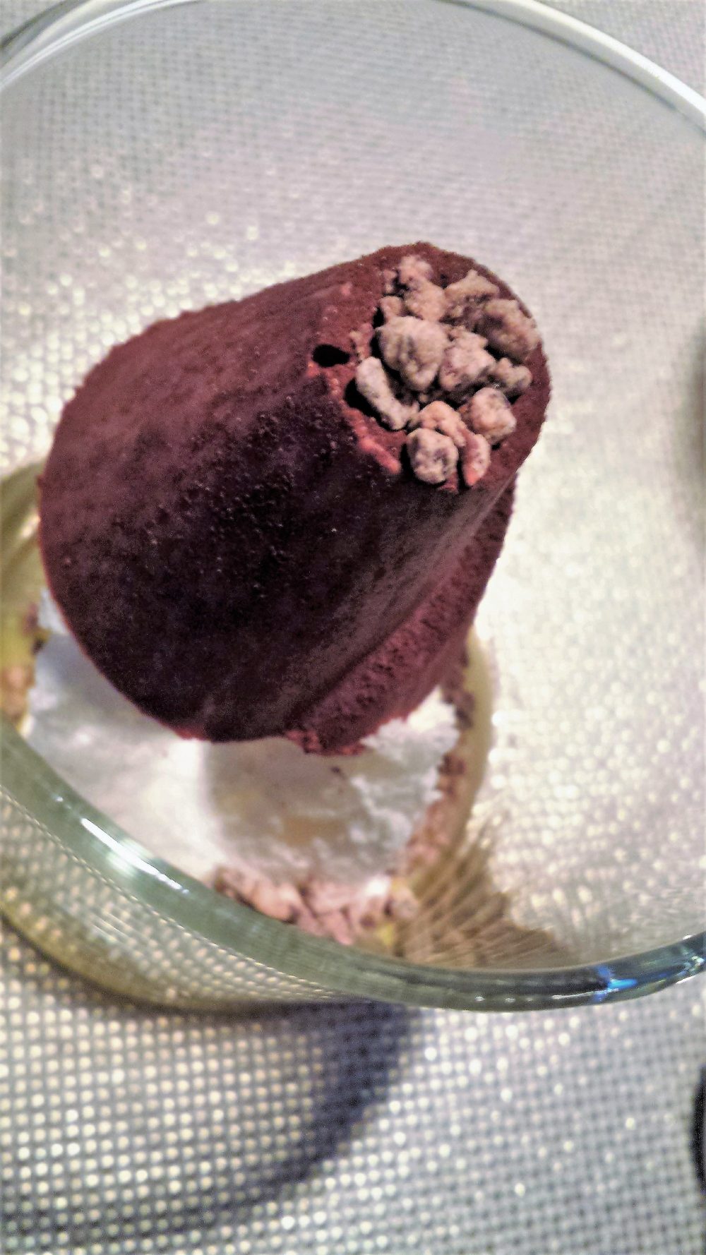 Dry, bianco e nero di cioccolato e salsa al frutto della passione