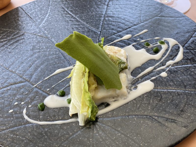 Seguono portate di pesce e carne, come il Petto d’anatra, frollato 23 giorni, e servito con crema di peperone giallo e rosso, sesamo bianco tostato, olio di alga wakame e crema di arancia sanguinella fermentata.