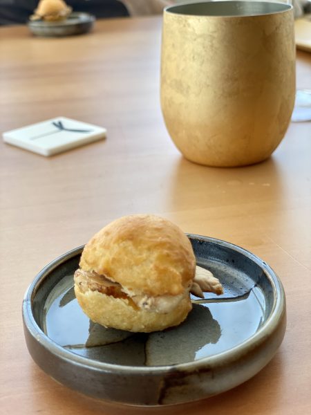 Ed è proprio con Omakase che diamo il via alle danze, in compagnia di Luigi Cremona, iniziando dall’aperitivo Bloody Mary, preparato con aceto di acqua di pomodoro, brodo di manzo, angostura, warchestershire sauce e kombucha alla lavanda, dove la evidente nota piccante prepara il palato ad assaporare le successive portate.