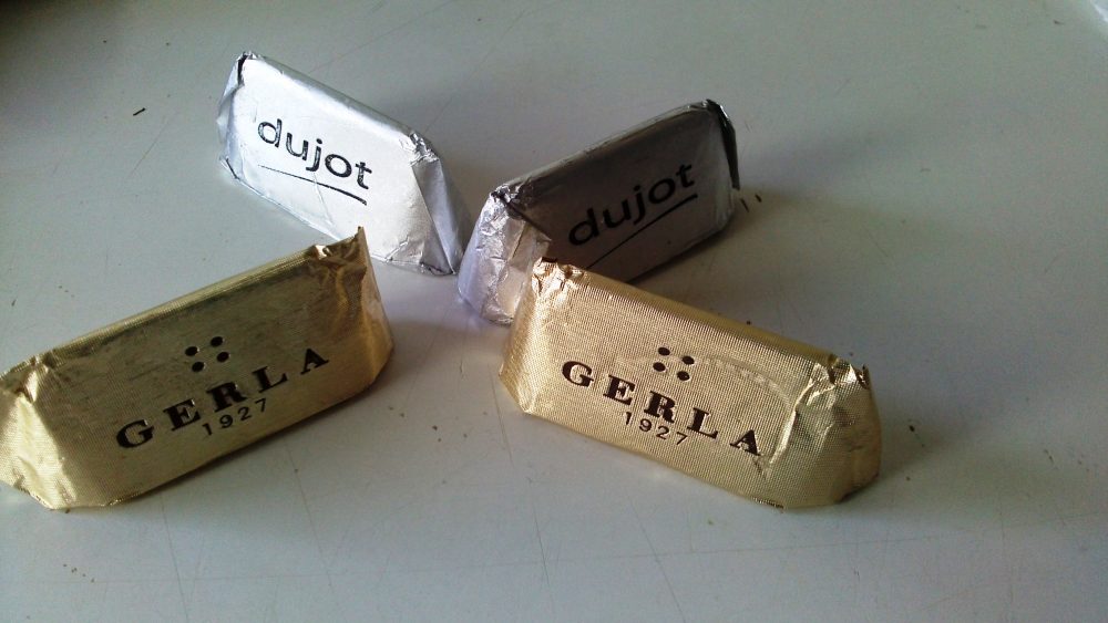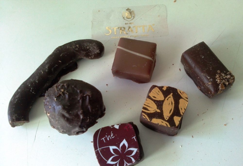 La varietà di cioccolato è tanta, dalle grandi barrette in carta argentata avvolte in cartoncini dai colori accesi, ai cremini e tartufi freschi, frutta candita od oleosa glassata, in su fino alla selezione di praline ripiene. Il quid che vale il viaggio è racchiuso invero nei cioccolatini alcolici. Ampia la selezione di spiriti usati, dai più tradizionali, sino ai più originali e arditi: uno su tutto la piccola botte al fondente ricolma di barolo chinato.