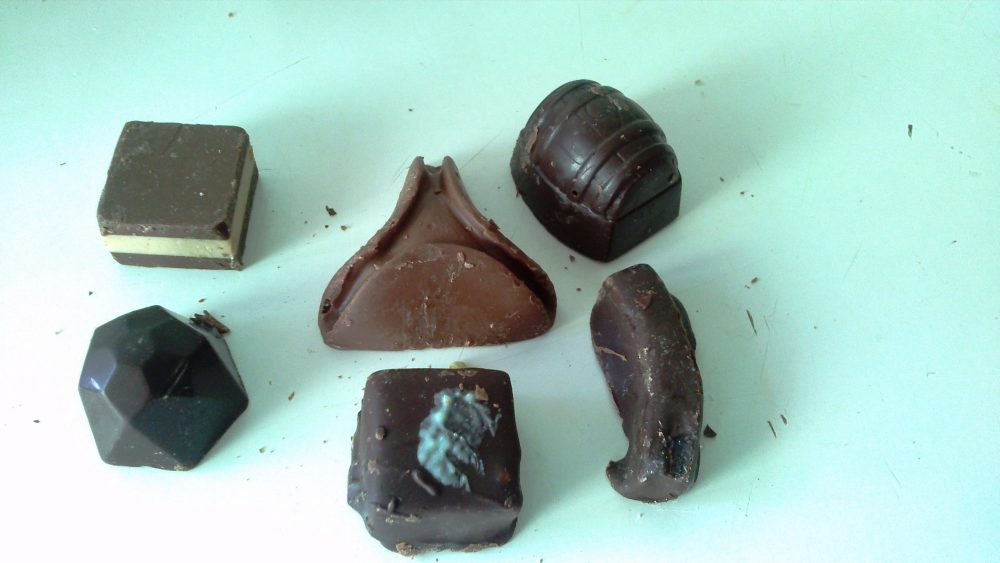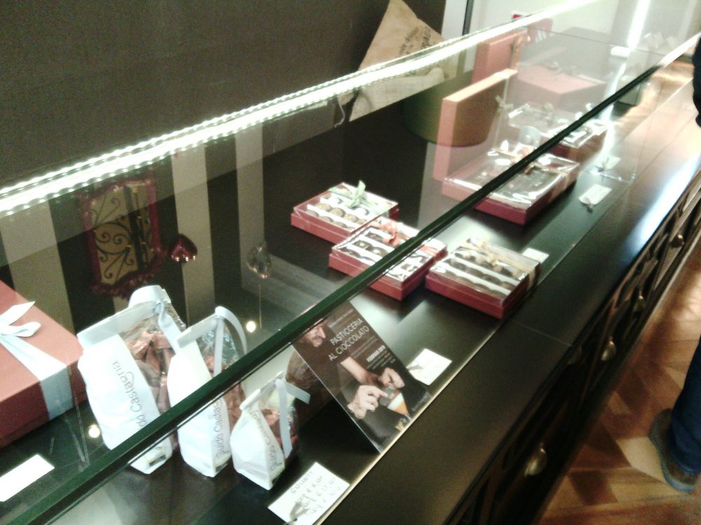 Guido Castagna, il bancone con gli assortimenti di cioccolatini – classici, speziati, misti