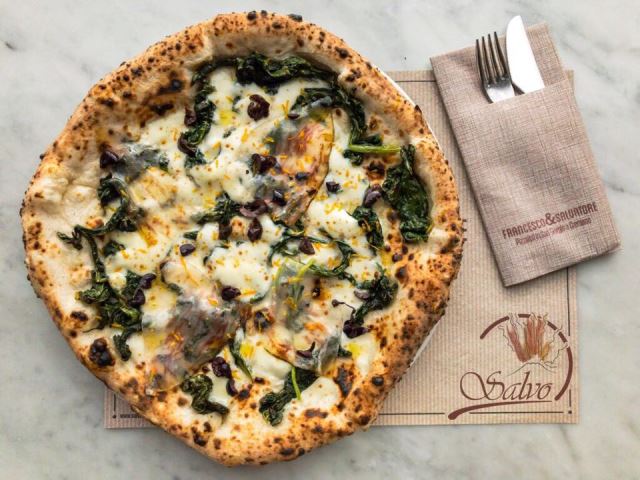 A San Giorgio il menù può cambiare anche ogni giorno per l’alternanza degli ortaggi e dei prodotti di stagione: chi frequenta la famosa Pizzeria dei Fratelli Salvo ormai lo sa e si lascia stupire con piacere dalle loro proposte e dalla cura quasi maniacale nella selezione degli ingredienti Tra le stagionali di questo periodo c’è la classica Bufala e Porcini, l’Ortolana autunnale con broccolo nero, funghi cardoncelli, broccoli baresi piccanti, zucca lunga napoletana grigliata, fior di latte del Caseificio Fior d’Agerola, basilico e olio extravergine bio d’oliva Proverbio di San Comaio e la Pelatello: Bianca con fior di Latte del Caseificio Fior d’Agerola, broccoli di rapa dolce, guanciale di Pelatello grigio ardesia artigianale, zest di arance, crumble di olive nere infornate e olio extravergine d’oliva monocultivar Frantoio Greppi dei Silli. A breve poi verrà messa a punto una pizza ai 4 formaggi e un’altra con pomodoro seccagno (prodotto siciliano recuperato e poco noto) e le olive bianche Nocellara del Belice in salamoia. Per le stagionalità invece I Fratelli Salvo sono in attesa dei primi friarielli per la più classica Salsiccia e Friarielli o in alternativa l’interpretazione dello chef Iaccarino. Molto presto si potranno gustare anche la Fracassi con crema di cavolo, broccoli barese e guanciale di nero casentino di Fracassi, la pizza broccolo nero e baccalà o una gustosa scarola, sgombro abbrustolito e fonduta di provola.