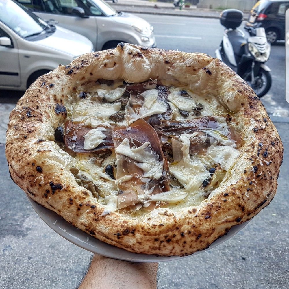 Il sapore della pizza di una volta abbinati agli ingredienti cari alla tradizione e alla passione per il proprio lavoro: Pasqualino Rossi è il principe della pizza cotta nel ruoto. Sul menu di queste settimane nella sua pizzeria c’è “La Mora Casertana” con ragù napoletano, salsiccia di Nero Casertano, provola di bufala e peperone crusco e una pizza dei sentimenti, la “Spacca cuore”, dedicata alla moglie e al figlio con funghi porcini, salame di maiale di campagna, provola e caciocavallo di latte Nobile.