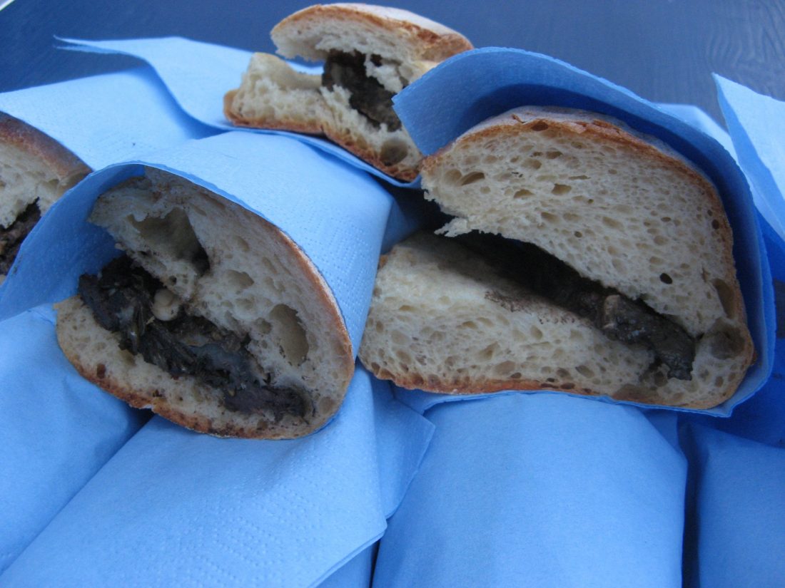 Già, il pani c’a miévusa composto dalla vastella, morbido panino spolverato di sesamo e ripieno di pezzetti di milza, polmone od anche trachea cotti in profondi pentoloni è un classico del ristoro “mordi e fuggi” venduto dai meusari, ambulanti che resistono indomiti dividendosi gli spazi di antichi, popolari quartieri di Palermo quali la Vuccirria o Ballarò con locali di tradizione come l’Antica Focacceria San Francesco, datata 1834, o quella di Porta Carbone, veri cult per gli appassionati non solo della milza che può essere servita “schetta”, cioè “scapola” con il semplice limone spremuto sopra o “maritata, conzata con ricotta e cacio ma anche delle arancine al ragù di carne, panelle, sfincioni, cicireddi – minutaglia di pesce fritta – e polpi appena pescati e cotti per pochi minuti in bollente acqua salata e conditi con limone e prezzemolo.