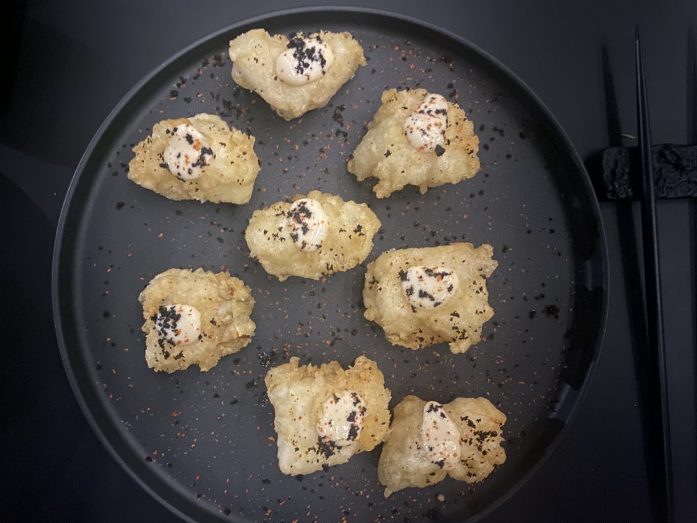 Namu – Baccala’ in tempura con salsa miso e polvere di olive caiazzane