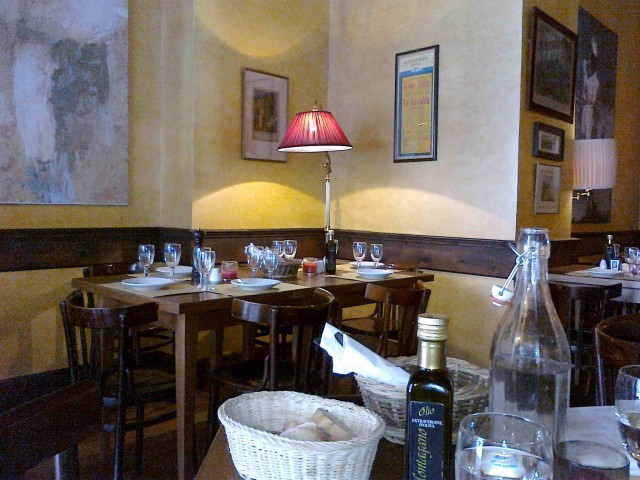 Alla casa di Ninetta a pranzo si possono spendere anche solo 8 euro e cinquanta, con un primo piatto, un secondo, un contorno di verdure e acqua … della casa. Alla carta sui 30. E che bello ritrovare a tavola le vecchie bottiglie di vetro con acqua di fontana! Sul lungo tavolo di legno posto al centro, tra sala e cucina, un ricco buffet di verdure – tutte quelle di stagione – stufate o grigliate (molto buoni i carciofini spaccati e arrostiti).
