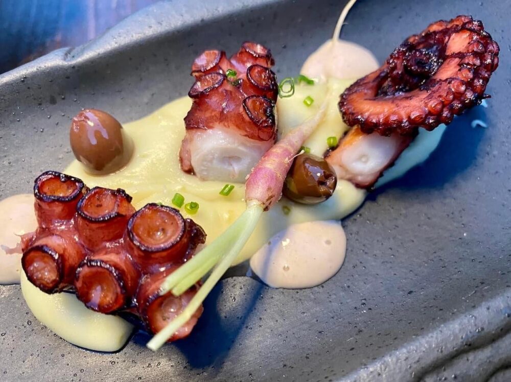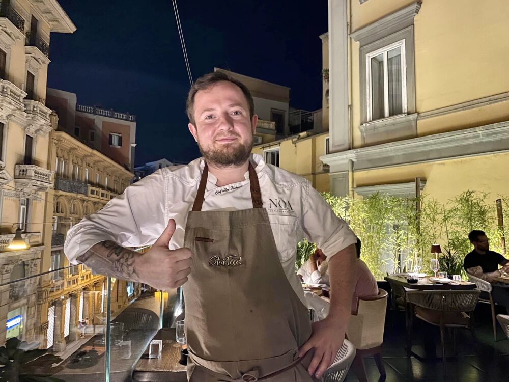 Partendo dagli appetizers, dalla crocchetta di Baccalà su Scarola e Pomodoro, al Poppadom indiano con ricciola e Gamberi Rossi fino al delizioso polpo scottato, il menù del Noa è un vero e proprio viaggio fatto di tecnica e suggestioni che , in un’epoca così complessa da un punto di vista storico, ci porta a viaggiare nel mondo della tavola, da sempre pacifico e pacificato. Una cucina precisa, molto delicata e metodica quella di Alex Pochynok che ha conquistato il pubblico campano sia durante il periodo del suo servizio da Executive Chef al Roji di Nola sia al Jap-One di Roberto Goretti a Napoli ed ora al Noa di Via Filangieri.