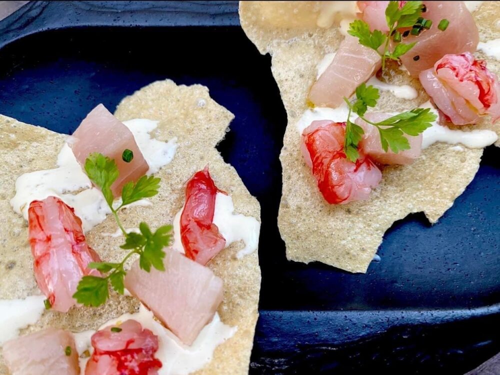 NOA, Poppadom, Gambero Rosso, Ricciola e Leche de Tigre