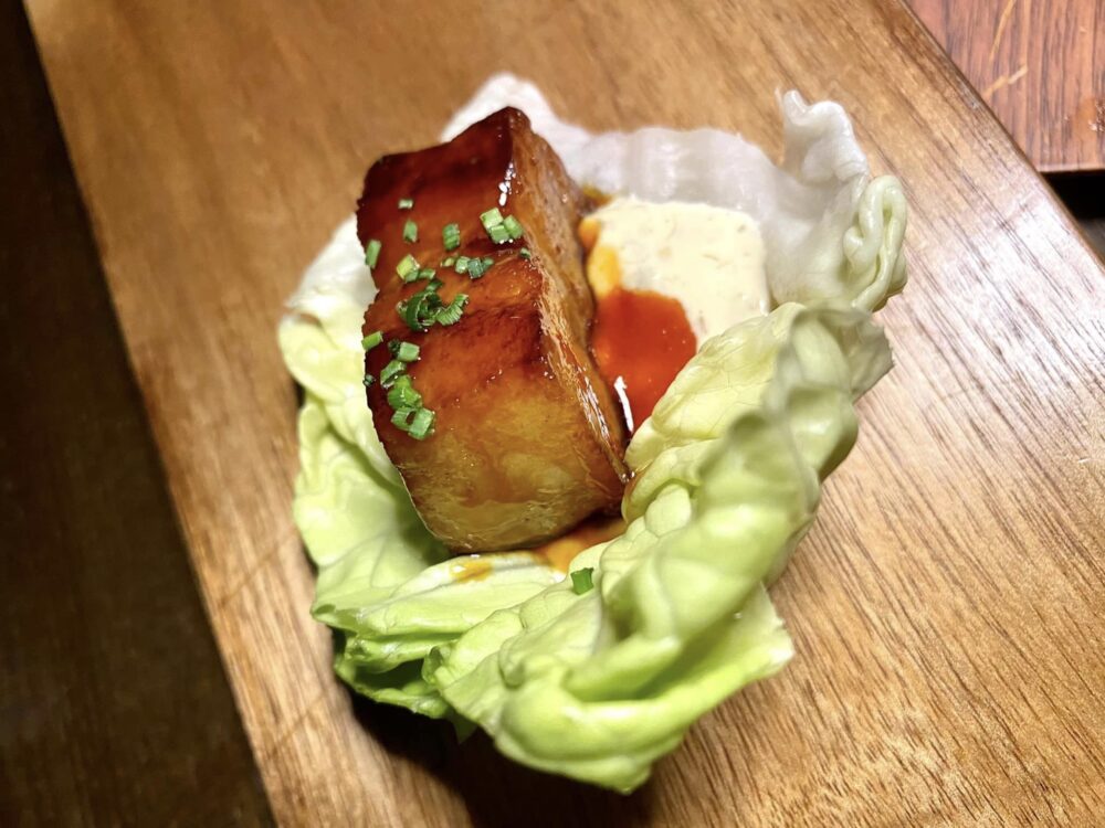 Una cucina che esprime tutta se stessa in un rapporto concreto e sincero con la materia prima, rigorosamente della miglior qualità, Manipolata il meno possibile se appropriato o contaminata nel profondo, al fine di farne esprimere tutte le più ampie potenzialità, “Bite size” davvero ben eseguiti. Nuovi signature dish del filone tapas del Noa Restaurant. Nell’ordine: Ssam di pancia di maialino cotto a bassa temperatura per 17 ore, glassata al miele e servita con lattuga e salsa tartara ai capperi e Bun di maialino iberico servito con sweet and sour sauce.