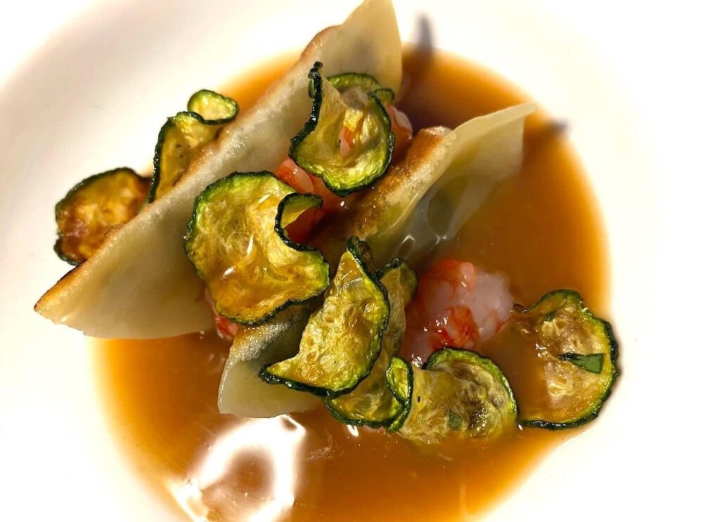 NOA, Gyoza alla Nerano con Gamberi Rossi
