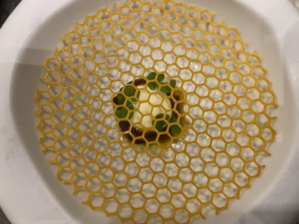 Un inizio scoppiettante, con la simulazione di una burrata con concentrato di pomodoro, alici e kefir affiorato: da anni predichiamo la concentrazione dei sapori, eccola qui.