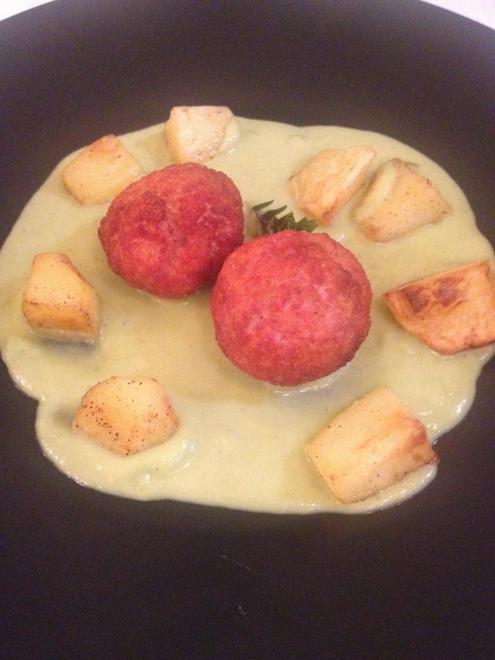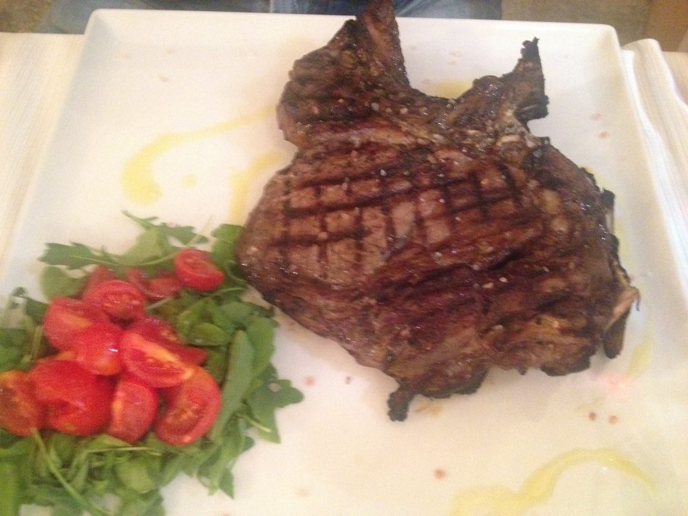 Per secondo, polpette su salsa di broccoli, non male anche se due di numero sono poche per un secondo piatto, e poi, il pezzo forte, una squisita bistecca di scottona italiana , anche se non hanno saputo indicarmi la razza ( scottona, significa femmina di bovino, che non ha mai partorito, non è quindi una razza). La carne era davvero eccellente, tenera, succosa, con un ottimo sapore. Da tempo non ne mangiavo di così buone. L’ ho accompagnata con patate al forno e un bel piedirosso bio, sempre di Sorrentino. Magari alla carta dei vini aggiungerei qualche altra etichetta del territorio, soprattutto, una catalanesca.