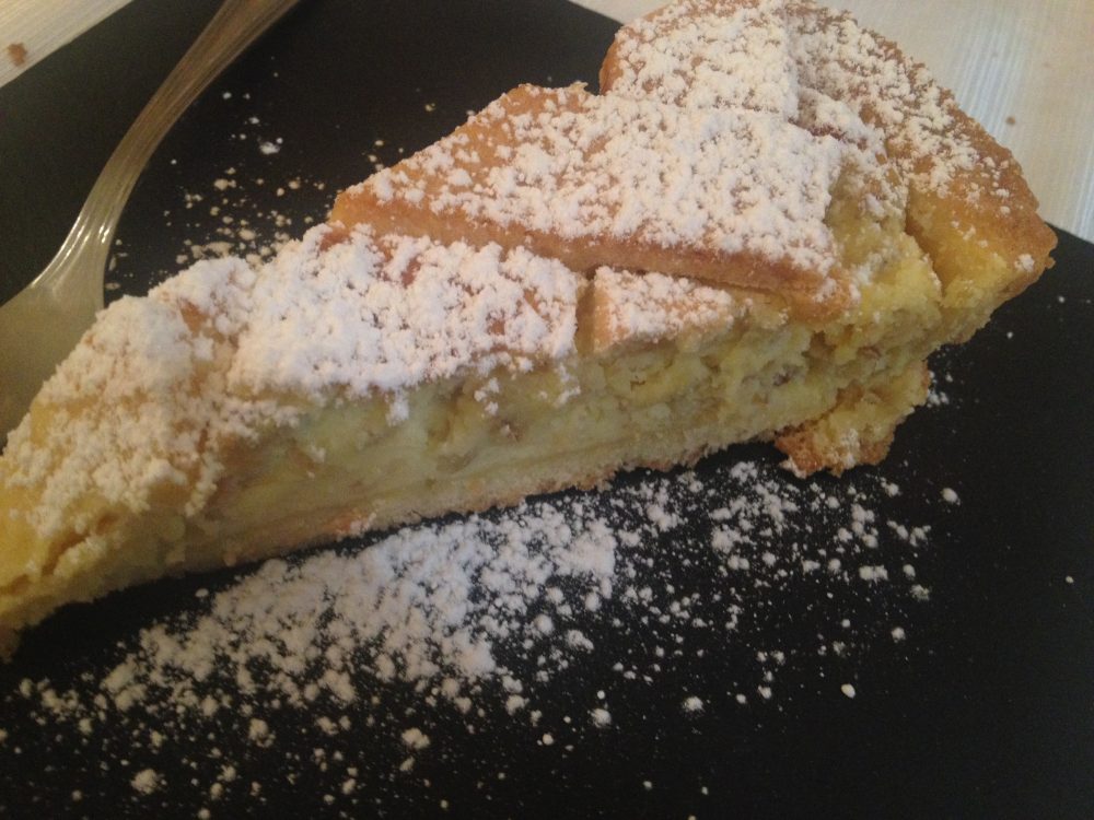 Pastiera e tiramisù per concludere un pasto piacevole. Il dolce pasquale a me piace più profumato di acqua di fiori d’arancio ma va bene così.