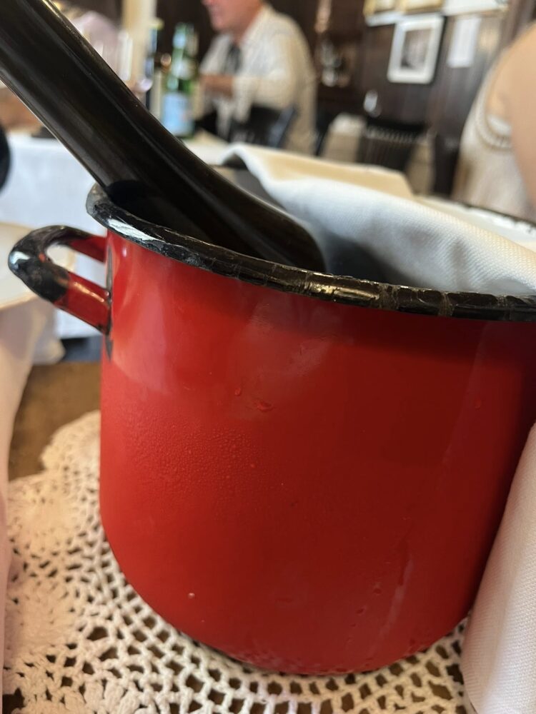 Deliziosa la faraona, anch’essa da sola vale il viaggio. Non mancano i contorni di verdure, un purè di patate rustico, il gelato fatto in casa. Purtroppo andiamo di fretta, ma questo è un luogo da vivere lentamente, godersi il tempo e bevendo a profusione alcuni dei migliori vini italiani. Ovviamente vi potete sbizzarrire con il parmigiano reggiano, il burro aziendale, mortadella e prosciutto crudo da sballo prima di cominciare.