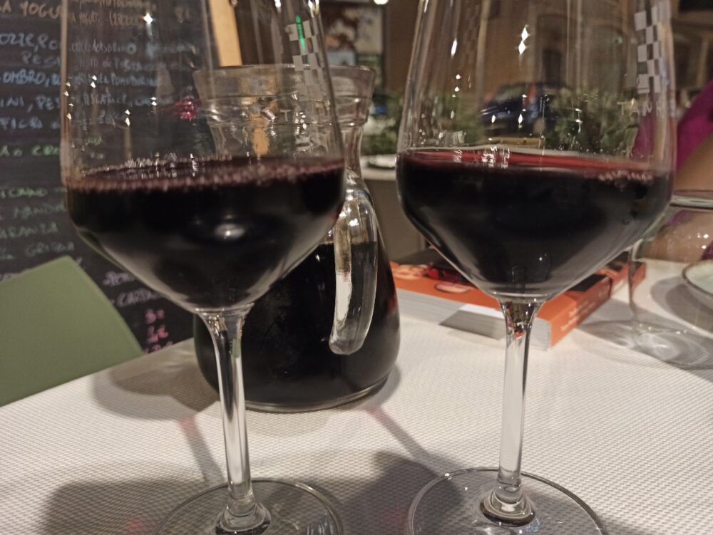 Ogni Osteria dovrebbe avere, oltre alla carta dei vini anche un “vino della casa” (e non sempre è così purtroppo!) e fortunatamente questa ce l’ha! E noi ordiniamo come di consueto il rosso, un buon Nero di Troia a 8 euro al litro.