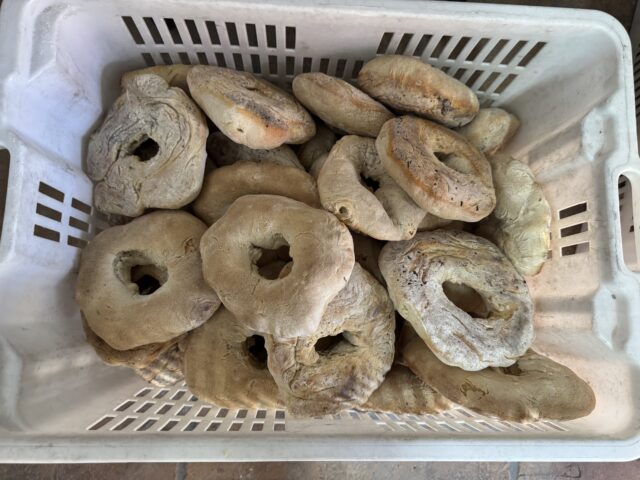 Al Panificio Esperti si prepara il pane, i taralli rigorosamente a mano, i vascuotto, la pizza, la pizza figliata e tante altre specialità delle tradizioni legate anche alle festività, come la pastiera e il tortano in questo periodo dell’anno. Le freselle sono l’altro prodotto di punta, che insieme alla cocchia di pane, sono i più richiesti dai clienti. “Le freselle fanno parte della nostra cultura e hanno una storia incredibile legata al popolo, alla vita contadina e alla sopravvivenza“, racconta Rosaria Esperti, tra un’infornata e l’altra. Dalla forma simile al tarallo, sostituiscono il pane in tante occasioni; l’impasto è fatto con farina di grano duro e vengono cotte due volte fino a diventare croccante.