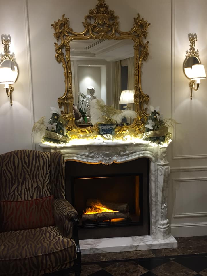 Ristorante Tosca dell’Hotel Splendid Royal a Parigi. Siamo a due passi dall’Avenue des Champs-Élysées, in un piccolo gioiello di architettura ed eleganza (fa parte del circuito Relais & Châteaux). Ancor più in questi giorni di festa un po’ grigi per gli scioperi anti Macron, con le strade senza molte decorazioni e luminarie, la facciata verde brillante del ristorante Tosca e l’ingresso dell’hotel con l’imponente albero di Natale appaiono caldi e accoglienti, un vero e proprio rifugio.